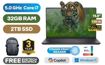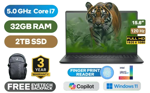 Dell Pro 15 Essential PV15250 13th Intel Core i7-1355U up to 5.0GHz Processor, 12MB Cache, 10x Cores, 12x Threads / 32GB DDR5 RAM / 2TB Ultra-Fast NVME SSD / 15.6" FHD (1920x1080) 120Hz IPS-Level Display / Integrated Intel Iris Xe Graphics / Windows 11 Home (64bit) / Realtek RTL8852BE Wi-Fi 6 Wireless LAN / Bluetooth 5.3 / 720p HD Web Camera / Finger Print Reader / 2x USB Type-A / 1x USB Type-C (Supports DisplayPort / Power Delivery) / 1x HDMI / 1x Microphone and Headphone Combo Jack / 1x SD Card Reader / 2 Tuned Speakers / Dell Pro 15 Essential PV15250 Intel Core i7 Laptop DealDell Pro 15 Essential PV15250 13th Intel Core i7-1355U up to 5.0GHz Processor, 12MB Cache, 10x Cores, 12x Threads / 32GB DDR5 RAM / 2TB Ultra-Fast NVME SSD / 15.6" FHD (1920x1080) 120Hz IPS-Level Display / Integrated Intel Iris Xe Graphics / Windows 11 Home (64bit) / Realtek RTL8852BE Wi-Fi 6 Wireless LAN / Bluetooth 5.3 / 720p HD Web Camera / Finger Print Reader / 2x USB Type-A / 1x USB Type-C (Supports DisplayPort / Power Delivery) / 1x HDMI / 1x Microphone and Headphone Combo Jack / 1x SD Card Reader / 2 Tuned Speakers / Dell Pro 15 Essential PV15250 Intel Core i7 Laptop Deal [PV15250_RPLU_007_P_VODA/32GB/2TB] / 3 YEARS WARRANTY / [+] GET FREE EVETECH FLUX Premium Gaming Backpack+ FREE DELIVERY !