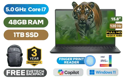 Dell Pro 15 Essential PV15250 13th Intel Core i7-1355U up to 5.0GHz Processor, 12MB Cache, 10x Cores, 12x Threads / 48GB DDR5 RAM / 1TB Ultra-Fast NVME SSD / 15.6" FHD (1920x1080) 120Hz IPS-Level Display / Integrated Intel Iris Xe Graphics / Windows 11 Home (64bit) / Realtek RTL8852BE Wi-Fi 6 Wireless LAN / Bluetooth 5.3 / 720p HD Web Camera / Finger Print Reader / 2x USB Type-A / 1x USB Type-C (Supports DisplayPort / Power Delivery) / 1x HDMI / 1x Microphone and Headphone Combo Jack / 1x SD Card Reader / 2 Tuned Speakers / Dell Pro 15 Essential PV15250 Intel Core i7 Laptop DealDell Pro 15 Essential PV15250 13th Intel Core i7-1355U up to 5.0GHz Processor, 12MB Cache, 10x Cores, 12x Threads / 48GB DDR5 RAM / 1TB Ultra-Fast NVME SSD / 15.6" FHD (1920x1080) 120Hz IPS-Level Display / Integrated Intel Iris Xe Graphics / Windows 11 Home (64bit) / Realtek RTL8852BE Wi-Fi 6 Wireless LAN / Bluetooth 5.3 / 720p HD Web Camera / Finger Print Reader / 2x USB Type-A / 1x USB Type-C (Supports DisplayPort / Power Delivery) / 1x HDMI / 1x Microphone and Headphone Combo Jack / 1x SD Card Reader / 2 Tuned Speakers / Dell Pro 15 Essential PV15250 Intel Core i7 Laptop Deal [PV15250_RPLU_007_P_VODA/48GB/1TB] / 3 YEARS WARRANTY / [+] GET FREE EVETECH FLUX Premium Gaming Backpack+ FREE DELIVERY !