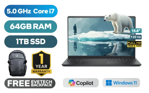 Dell Pro 15 Essential PV15250 5250-4407 13th Intel Core i7-1355U up to 5.0GHz Processor, 12MB Cache, 10x Cores, 12x Threads / 64GB DDR5 RAM / 1TB Ultra-Fast NVME SSD / 15.6" FHD (1920x1080) 120Hz IPS-Level Display / Integrated Intel Iris Xe Graphics / Windows 11 Home (64bit) / Realtek RTL8852BE Wi-Fi 6 Wireless LAN / Bluetooth 5.3 / 720p HD Web Camera / 2x USB Type-A / 1x USB Type-C (Supports DisplayPort / Power Delivery) / 1x HDMI / 1x Microphone and Headphone Combo Jack / 1x SD Card Reader / 2 Tuned Speakers / 1 Year Warranty / Dell Pro 15 Essential PV15250 Intel Core i7 Laptop DealDell Pro 15 Essential PV15250 5250-4407 13th Intel Core i7-1355U up to 5.0GHz Processor, 12MB Cache, 10x Cores, 12x Threads / 64GB DDR5 RAM / 1TB Ultra-Fast NVME SSD / 15.6" FHD (1920x1080) 120Hz IPS-Level Display / Integrated Intel Iris Xe Graphics / Windows 11 Home (64bit) / Realtek RTL8852BE Wi-Fi 6 Wireless LAN / Bluetooth 5.3 / 720p HD Web Camera / 2x USB Type-A / 1x USB Type-C (Supports DisplayPort / Power Delivery) / 1x HDMI / 1x Microphone and Headphone Combo Jack / 1x SD Card Reader / 2 Tuned Speakers / 1 Year Warranty / Dell Pro 15 Essential PV15250 Intel Core i7 Laptop Deal [PV15250_RPLU_007_HOM/64GB/1TB] / [+] GET FREE EVETECH FLUX Premium Gaming Backpack+ FREE DELIVERY !