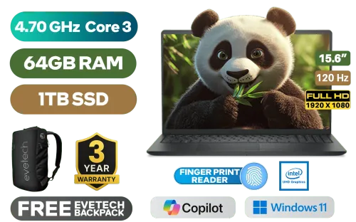 Dell Pro 15 Essential PV15250 Intel Core 3-100U up to 4.70GHz Processor, 10MB Cache, 6x Cores, 8x Threads / 64GB DDR5 RAM / 1TB Ultra-Fast NVME SSD / 15.6" FHD (1920x1080) 120Hz Anti-glare IPS-Level Display / Integrated Intel UHD Graphics / Windows 11 Home (64bit) / Realtek RTL8852BE Wi-Fi 6 Wireless LAN / Bluetooth 5.2 / 720p HD Camera / 2x USB Type-A / 1x USB Type-C / 1x HDMI / 1x SD Card Reader / 1x Microphone and Headphone Combo Jack / 2 Tuned Speakers / Dell Pro 15 PV15250 Essential Intel Core 3 Laptop DealDell Pro 15 Essential PV15250 Intel Core 3-100U up to 4.70GHz Processor, 10MB Cache, 6x Cores, 8x Threads / 64GB DDR5 RAM / 1TB Ultra-Fast NVME SSD / 15.6" FHD (1920x1080) 120Hz Anti-glare IPS-Level Display / Integrated Intel UHD Graphics / Windows 11 Home (64bit) / Realtek RTL8852BE Wi-Fi 6 Wireless LAN / Bluetooth 5.2 / 720p HD Camera / 2x USB Type-A / 1x USB Type-C / 1x HDMI / 1x SD Card Reader / 1x Microphone and Headphone Combo Jack / 2 Tuned Speakers / Dell Pro 15 PV15250 Essential Intel Core 3 Laptop Deal [PV15250_RPLU_004_P_VODA/64GB/1TB] / 3 YEARS WARRANTY / [+] GET FREE EVETECH NEO Premium Gaming Backpack+ FREE DELIVERY !