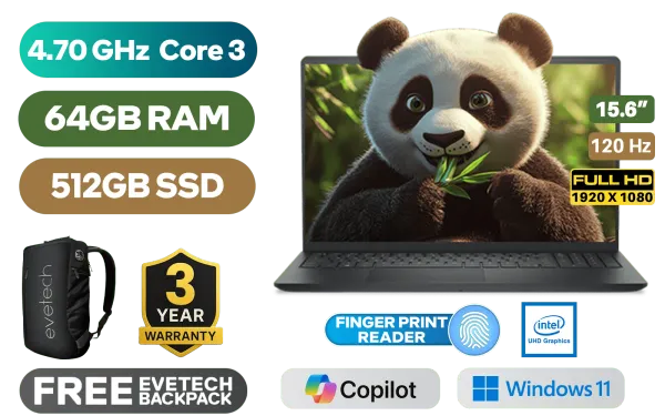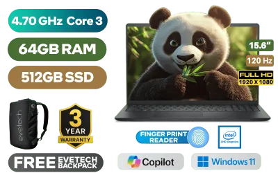 Dell Pro 15 Essential PV15250 Intel Core 3-100U up to 4.70GHz Processor, 10MB Cache, 6x Cores, 8x Threads / 64GB DDR5 RAM / 512GB Ultra-Fast NVME SSD / 15.6" FHD (1920x1080) 120Hz Anti-glare IPS-Level Display / Integrated Intel UHD Graphics / Windows 11 Home (64bit) / Realtek RTL8852BE Wi-Fi 6 Wireless LAN / Bluetooth 5.2 / 720p HD Camera / 2x USB Type-A / 1x USB Type-C / 1x HDMI / 1x SD Card Reader / 1x Microphone and Headphone Combo Jack / 2 Tuned Speakers / Dell Pro 15 PV15250 Essential Intel Core 3 Laptop DealDell Pro 15 Essential PV15250 Intel Core 3-100U up to 4.70GHz Processor, 10MB Cache, 6x Cores, 8x Threads / 64GB DDR5 RAM / 512GB Ultra-Fast NVME SSD / 15.6" FHD (1920x1080) 120Hz Anti-glare IPS-Level Display / Integrated Intel UHD Graphics / Windows 11 Home (64bit) / Realtek RTL8852BE Wi-Fi 6 Wireless LAN / Bluetooth 5.2 / 720p HD Camera / 2x USB Type-A / 1x USB Type-C / 1x HDMI / 1x SD Card Reader / 1x Microphone and Headphone Combo Jack / 2 Tuned Speakers / Dell Pro 15 PV15250 Essential Intel Core 3 Laptop Deal [PV15250_RPLU_004_P_VODA/64GB] / 3 YEARS WARRANTY / [+] GET FREE EVETECH NEO Premium Gaming Backpack+ FREE DELIVERY !