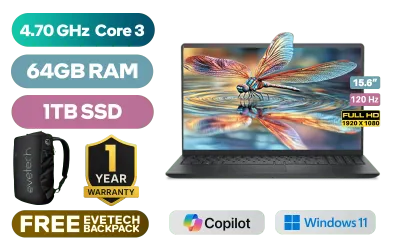 Dell Pro 15 Essential PV15250 Intel Core 3-100U up to 4.70GHz Processor, 10MB Cache, 6x Cores, 8x Threads / 64GB DDR5 RAM / 1TB Ultra-Fast NVME SSD / 15.6" FHD (1920x1080) 120Hz Anti-glare IPS-Level Display / Integrated Intel UHD Graphics / Windows 11 Home (64bit) / Realtek RTL8852BE Wi-Fi 6 Wireless LAN / Bluetooth 5.2 / 720p HD Web Camera / 2x USB Type-A / 1x USB Type-C / 1x HDMI / 1x Microphone and Headphone Combo Jack / 1x SD Card Reader / Non-Backlit Keyboard / 2 Tuned Speakers / 1 Year On-Site Warranty / Dell Pro 15 Essential PV15250 Intel Core 3 Laptop DealDell Pro 15 Essential PV15250 Intel Core 3-100U up to 4.70GHz Processor, 10MB Cache, 6x Cores, 8x Threads / 64GB DDR5 RAM / 1TB Ultra-Fast NVME SSD / 15.6" FHD (1920x1080) 120Hz Anti-glare IPS-Level Display / Integrated Intel UHD Graphics / Windows 11 Home (64bit) / Realtek RTL8852BE Wi-Fi 6 Wireless LAN / Bluetooth 5.2 / 720p HD Web Camera / 2x USB Type-A / 1x USB Type-C / 1x HDMI / 1x Microphone and Headphone Combo Jack / 1x SD Card Reader / Non-Backlit Keyboard / 2 Tuned Speakers / 1 Year On-Site Warranty / Dell Pro 15 Essential PV15250 Intel Core 3 Laptop Deal [PV15250_RPLU_004_P_HOM/64GB/1TB] + FREE DELIVERY !