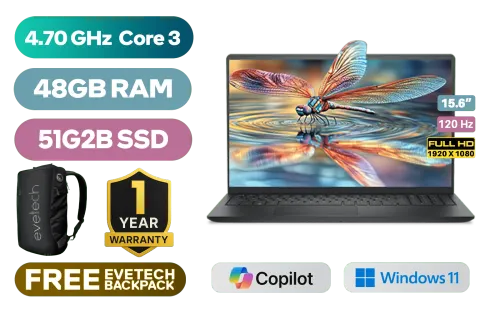 Dell Pro 15 Essential PV15250 Intel Core 3-100U up to 4.70GHz Processor, 10MB Cache, 6x Cores, 8x Threads / 48GB DDR5 RAM / 512GB Ultra-Fast NVME SSD / 15.6" FHD (1920x1080) 120Hz Anti-glare IPS-Level Display / Integrated Intel UHD Graphics / Windows 11 Home (64bit) / Realtek RTL8852BE Wi-Fi 6 Wireless LAN / Bluetooth 5.2 / 720p HD Web Camera / 2x USB Type-A / 1x USB Type-C / 1x HDMI / 1x Microphone and Headphone Combo Jack / 1x SD Card Reader / Non-Backlit Keyboard / 2 Tuned Speakers / 1 Year On-Site Warranty / Dell Pro 15 Essential PV15250 Intel Core 3 Laptop DealDell Pro 15 Essential PV15250 Intel Core 3-100U up to 4.70GHz Processor, 10MB Cache, 6x Cores, 8x Threads / 48GB DDR5 RAM / 512GB Ultra-Fast NVME SSD / 15.6" FHD (1920x1080) 120Hz Anti-glare IPS-Level Display / Integrated Intel UHD Graphics / Windows 11 Home (64bit) / Realtek RTL8852BE Wi-Fi 6 Wireless LAN / Bluetooth 5.2 / 720p HD Web Camera / 2x USB Type-A / 1x USB Type-C / 1x HDMI / 1x Microphone and Headphone Combo Jack / 1x SD Card Reader / Non-Backlit Keyboard / 2 Tuned Speakers / 1 Year On-Site Warranty / Dell Pro 15 Essential PV15250 Intel Core 3 Laptop Deal [PV15250_RPLU_004_P_HOM/48GB] / [+] GET FREE EVETECH NEO Premium Gaming Backpack+ FREE DELIVERY !