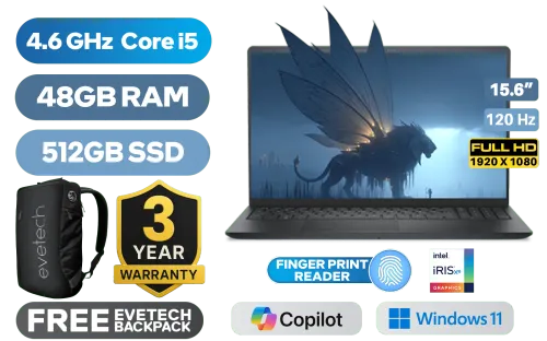 Dell Pro 15 Essential PV15250 13th Generation Intel Core i5-1334U up to 4.6GHz Processor, 12MB Cache, 10x Cores, 12x Threads / 48GB DDR5 RAM / 512GB Ultra-Fast NVME SSD / 15.6" FHD (1920x1080) 120Hz Anti-glare IPS-Level Display / Integrated Intel Iris Xe Graphics / Windows 11 Home (64bit) / Realtek RTL8852BE Wi-Fi 6 Wireless LAN / Bluetooth 5.2 / 720p HD Camera / 2x USB Type-A / 1x USB Type-C / 1x HDMI / 1x Microphone and Headphone Combo Jack / 1x SD Card Reader / 2 Tuned Speakers / Fingerprint Reader / Dell Pro 15 Essential PV15250 Intel Core i5 Laptop DealDell Pro 15 Essential PV15250 13th Generation Intel Core i5-1334U up to 4.6GHz Processor, 12MB Cache, 10x Cores, 12x Threads / 48GB DDR5 RAM / 512GB Ultra-Fast NVME SSD / 15.6" FHD (1920x1080) 120Hz Anti-glare IPS-Level Display / Integrated Intel Iris Xe Graphics / Windows 11 Home (64bit) / Realtek RTL8852BE Wi-Fi 6 Wireless LAN / Bluetooth 5.2 / 720p HD Camera / 2x USB Type-A / 1x USB Type-C / 1x HDMI / 1x Microphone and Headphone Combo Jack / 1x SD Card Reader / 2 Tuned Speakers / Fingerprint Reader / Dell Pro 15 Essential PV15250 Intel Core i5 Laptop Deal [PV15250_RPLU_005_P_VODA/48GB] / 3 YEARS WARRANTY / [+] GET FREE EVETECH NEO Premium Gaming Backpack+ FREE DELIVERY !