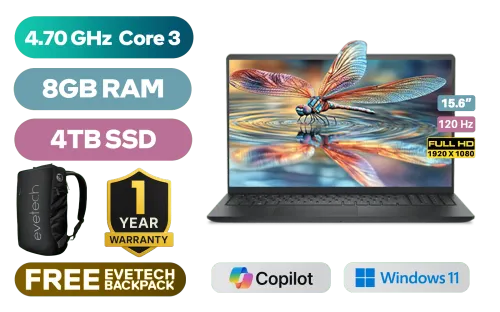Dell Pro 15 Essential PV15250 Intel Core 3-100U up to 4.70GHz Processor, 10MB Cache, 6x Cores, 8x Threads / 8GB DDR5 RAM / 4TB Ultra-Fast NVME SSD / 15.6" FHD (1920x1080) 120Hz Anti-glare IPS-Level Display / Integrated Intel UHD Graphics / Windows 11 Home (64bit) / Realtek RTL8852BE Wi-Fi 6 Wireless LAN / Bluetooth 5.2 / 720p HD Web Camera / 2x USB Type-A / 1x USB Type-C / 1x HDMI / 1x Microphone and Headphone Combo Jack / 1x SD Card Reader / Non-Backlit Keyboard / 2 Tuned Speakers / 1 Year On-Site Warranty / Dell Pro 15 Essential PV15250 Intel Core 3 Laptop DealDell Pro 15 Essential PV15250 Intel Core 3-100U up to 4.70GHz Processor, 10MB Cache, 6x Cores, 8x Threads / 8GB DDR5 RAM / 4TB Ultra-Fast NVME SSD / 15.6" FHD (1920x1080) 120Hz Anti-glare IPS-Level Display / Integrated Intel UHD Graphics / Windows 11 Home (64bit) / Realtek RTL8852BE Wi-Fi 6 Wireless LAN / Bluetooth 5.2 / 720p HD Web Camera / 2x USB Type-A / 1x USB Type-C / 1x HDMI / 1x Microphone and Headphone Combo Jack / 1x SD Card Reader / Non-Backlit Keyboard / 2 Tuned Speakers / 1 Year On-Site Warranty / Dell Pro 15 Essential PV15250 Intel Core 3 Laptop Deal [PV15250_RPLU_004_P_HOM/4TB] / [+] GET FREE EVETECH NEO Premium Gaming Backpack+ FREE DELIVERY !
