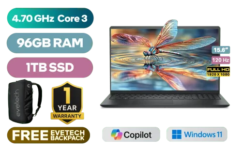 Dell Pro 15 Essential PV15250 Intel Core 3-100U up to 4.70GHz Processor, 10MB Cache, 6x Cores, 8x Threads / 96GB DDR5 RAM / 1TB Ultra-Fast NVME SSD / 15.6" FHD (1920x1080) 120Hz Anti-glare IPS-Level Display / Integrated Intel UHD Graphics / Windows 11 Home (64bit) / Realtek RTL8852BE Wi-Fi 6 Wireless LAN / Bluetooth 5.2 / 720p HD Web Camera / 2x USB Type-A / 1x USB Type-C / 1x HDMI / 1x Microphone and Headphone Combo Jack / 1x SD Card Reader / Non-Backlit Keyboard / 2 Tuned Speakers / 1 Year On-Site Warranty / Dell Pro 15 Essential PV15250 Intel Core 3 Laptop DealDell Pro 15 Essential PV15250 Intel Core 3-100U up to 4.70GHz Processor, 10MB Cache, 6x Cores, 8x Threads / 96GB DDR5 RAM / 1TB Ultra-Fast NVME SSD / 15.6" FHD (1920x1080) 120Hz Anti-glare IPS-Level Display / Integrated Intel UHD Graphics / Windows 11 Home (64bit) / Realtek RTL8852BE Wi-Fi 6 Wireless LAN / Bluetooth 5.2 / 720p HD Web Camera / 2x USB Type-A / 1x USB Type-C / 1x HDMI / 1x Microphone and Headphone Combo Jack / 1x SD Card Reader / Non-Backlit Keyboard / 2 Tuned Speakers / 1 Year On-Site Warranty / Dell Pro 15 Essential PV15250 Intel Core 3 Laptop Deal [PV15250_RPLU_004_P_HOM/96GB/1TB] / [+] GET FREE EVETECH NEO Premium Gaming Backpack+ FREE DELIVERY !