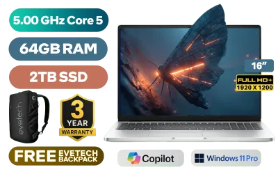 Dell Pro 16 PC16250 Intel® Core™ 5 120U up to 5.00GHz Processor, 12MB Cache, 10x Cores, 12x Threads / 64GB DDR5 RAM / 2TB Ultra-Fast NVME SSD / 16" FHD+ (1920x1200) Anti-glare, IPS-Level Display / Integrated Intel Graphics / <span style="font-size: 20px; color: #00BFFF; font-weight: bold;">Windows 11 Professional (64bit)</span> / Intel Wi-Fi 6E AX211 Wireless LAN / Bluetooth 5.3 / 1080P FHD IR Web Camera / 2x USB Type-A / 2x USB Type-C (Supports Power Delivery / DisplayPort) / 1x RJ-45 / 1x HDMI / 1x Headphone and Microphone Combo Jack / Kensington Lock / Fingerprint Reader / White Backlit Keyboard / 4 Stereo speakers with Waves MaxxAudio® Pro / Dell Pro 16 PC16250 Core 5 Laptop DealDell Pro 16 PC16250 Intel® Core™ 5 120U up to 5.00GHz Processor, 12MB Cache, 10x Cores, 12x Threads / 64GB DDR5 RAM / 2TB Ultra-Fast NVME SSD / 16" FHD+ (1920x1200) Anti-glare, IPS-Level Display / Integrated Intel Graphics / Windows 11 Professional (64bit) / Intel Wi-Fi 6E AX211 Wireless LAN / Bluetooth 5.3 / 1080P FHD IR Web Camera / 2x USB Type-A / 2x USB Type-C (Supports Power Delivery / DisplayPort) / 1x RJ-45 / 1x HDMI / 1x Headphone and Microphone Combo Jack / Kensington Lock / Fingerprint Reader / White Backlit Keyboard / 4 Stereo speakers with Waves MaxxAudio® Pro / Dell Pro 16 PC16250 Core 5 Laptop Deal [BTO010_PC16250/64GB/2TB] / [+] GET FREE EVETECH NEO Premium Gaming Backpack / 3 YEARS WARRANTY + FREE DELIVERY !