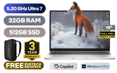 Dell Pro 16 PC16250 Intel® Core™ Ultra 7 255U up to 5.20GHz Processor, 12MB Cache, 12x Cores, 14x Threads / 32GB DDR5 RAM / 512GB Ultra-Fast NVME SSD / 16" FHD+ (1920x1200) Anti-glare, IPS-Level Display / Integrated Intel Graphics / <span style="font-size: 20px; color: #00BFFF; font-weight: bold;">Windows 11 Professional (64bit)</span> / Intel Wi-Fi 6 AX211 Wireless LAN / Bluetooth 5.3 / 1080P FHD IR Web Camera / 2x USB Type-A / 2x USB Type-C (Supports Power Delivery / DisplayPort) / 1x RJ-45 / 1x HDMI / 1x Headphone and Microphone Combo Jack / Kensington Lock / White Backlit Keyboard / 4 Stereo speakers with Waves MaxxAudio® Pro / Dell Pro 16 PC16250 Ultra 7 Laptop DealDell Pro 16 PC16250 Intel® Core™ Ultra 7 255U up to 5.20GHz Processor, 12MB Cache, 12x Cores, 14x Threads / 32GB DDR5 RAM / 512GB Ultra-Fast NVME SSD / 16" FHD+ (1920x1200) Anti-glare, IPS-Level Display / Integrated Intel Graphics / Windows 11 Professional (64bit) / Intel Wi-Fi 6 AX211 Wireless LAN / Bluetooth 5.3 / 1080P FHD IR Web Camera / 2x USB Type-A / 2x USB Type-C (Supports Power Delivery / DisplayPort) / 1x RJ-45 / 1x HDMI / 1x Headphone and Microphone Combo Jack / Kensington Lock / White Backlit Keyboard / 4 Stereo speakers with Waves MaxxAudio® Pro / Dell Pro 16 PC16250 Ultra 7 Laptop Deal [BTO107_PC16250/32GB] / [+] GET FREE EVETECH NEO Premium Gaming Backpack / 3 YEARS WARRANTY + FREE DELIVERY !