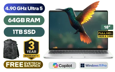 Dell Pro 16 PC16250 Intel® Core™ Ultra 5-235U up to 4.90GHz Processor, 12MB Cache, 12x Cores, 14x Threads / 64GB DDR5 RAM / 1TB Ultra-Fast NVME SSD / 16" FHD+ (1920x1200) Anti-glare Display / Integrated Intel Graphics / <span style="font-size: 20px; color: #00BFFF; font-weight: bold;">Windows 11 Professional (64bit)</span> / Intel Wi-Fi 6E AX211 Wireless LAN / Bluetooth 5.3 / 1080P FHD IR Web Camera / 2x USB Type-A / 2x USB Type-C (Supports Thunderbolt 4 / Power Delivery / DisplayPort /<span style="font-size: 20px; color: #ed183b; font-weight: bold;">Type-C Charger</span>) / 1x RJ-45 / 1x HDMI / 1x Headphone and Microphone Combo Jack / Fingerprint Reader / White Backlit Keyboard / 2x 2W Speakers with MaxxAudio / Dell Pro 16 PC16250 Ultra 5 Laptop DealDell Pro 16 PC16250 Intel® Core™ Ultra 5-235U up to 4.90GHz Processor, 12MB Cache, 12x Cores, 14x Threads / 64GB DDR5 RAM / 1TB Ultra-Fast NVME SSD / 16" FHD+ (1920x1200) Anti-glare Display / Integrated Intel Graphics / Windows 11 Professional (64bit) / Intel Wi-Fi 6E AX211 Wireless LAN / Bluetooth 5.3 / 1080P FHD IR Web Camera / 2x USB Type-A / 2x USB Type-C (Supports Thunderbolt 4 / Power Delivery / DisplayPort /Type-C Charger) / 1x RJ-45 / 1x HDMI / 1x Headphone and Microphone Combo Jack / Fingerprint Reader / White Backlit Keyboard / 2x 2W Speakers with MaxxAudio / Dell Pro 16 PC16250 Ultra 5 Laptop Deal [BTO106_PC16250/64GB/1TB] / 3 YEARS WARRANTY / [+] GET FREE EVETECH DASH Premium Gaming Backpack+ FREE DELIVERY !