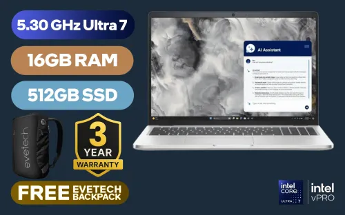 Dell Pro 16 Plus Intel® Core™ Ultra 7-265U up to 5.30GHz, 12MB Cache , 12x Cores, 14x Threads Processor / 16GB DDR5 RAM / 512GB Ultra-Fast NVME SSD / 16" FHD+ (1920x1200) Anti-glare IPS-Level Display / Integrated Intel Graphics / <span style="color:blue; font-size: 17px;">Windows 11 Professional (64bit)</span> / Intel WiFi 6E AX211 Wireless LAN / Bluetooth 5.3 / 1080p FHD IR Camera / 2x USB Type-A / 2x USB Type-C (Supports Thunderbolt 4 / DisplayPort 2.1) / 1x HDMI / 1x SIM Card Slot / 1x Micro SD Card Reader / 1x RJ-45 / 1x Microphone and Headphone Combo Jack / Kensington Lock / White backlight Keyboard / 2x 2W Speakers with Cirrus Logic / Fingerprint Reader / Dell Pro 16 Plus Core Ultra 7 Laptop DealDell Pro 16 Plus Intel® Core™ Ultra 7-265U up to 5.30GHz, 12MB Cache , 12x Cores, 14x Threads Processor / 16GB DDR5 RAM / 512GB Ultra-Fast NVME SSD / 16" FHD+ (1920x1200) Anti-glare IPS-Level Display / Integrated Intel Graphics / Windows 11 Professional (64bit) / Intel WiFi 6E AX211 Wireless LAN / Bluetooth 5.3 / 1080p FHD IR Camera / 2x USB Type-A / 2x USB Type-C (Supports Thunderbolt 4 / DisplayPort 2.1) / 1x HDMI / 1x SIM Card Slot / 1x Micro SD Card Reader / 1x RJ-45 / 1x Microphone and Headphone Combo Jack / Kensington Lock / White backlight Keyboard / 2x 2W Speakers with Cirrus Logic / Fingerprint Reader / Dell Pro 16 Plus Core Ultra 7 Laptop Deal [BTO107_PB16250] / 3 YEARS WARRANTY / [+] GET FREE EVETECH NEO Premium Gaming Backpack+ FREE DELIVERY !