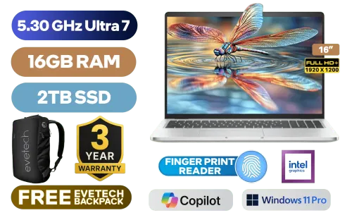 Dell Pro 16 Plus Intel® Core™ Ultra 7-265U up to 5.30GHz, 12MB Cache , 12x Cores, 14x Threads Processor / 16GB DDR5 RAM / 2TB Ultra-Fast NVME SSD / 16" FHD+ (1920x1200) Anti-glare IPS-Level Display / Integrated Intel Graphics / <span style="color:blue; font-size: 17px;">Windows 11 Professional (64bit)</span> / Intel WiFi 6E AX211 Wireless LAN / Bluetooth 5.3 / 1080p FHD IR Camera / 2x USB Type-A / 2x USB Type-C (Supports Thunderbolt 4 / DisplayPort 2.1) / 1x HDMI / 1x SIM Card Slot / 1x Micro SD Card Reader / 1x RJ-45 / 1x Microphone and Headphone Combo Jack / Kensington Lock / White backlight Keyboard / 2x 2W Speakers with Cirrus Logic / Fingerprint Reader / Dell Pro 16 Plus Core Ultra 7 Laptop DealDell Pro 16 Plus Intel® Core™ Ultra 7-265U up to 5.30GHz, 12MB Cache , 12x Cores, 14x Threads Processor / 16GB DDR5 RAM / 2TB Ultra-Fast NVME SSD / 16" FHD+ (1920x1200) Anti-glare IPS-Level Display / Integrated Intel Graphics / Windows 11 Professional (64bit) / Intel WiFi 6E AX211 Wireless LAN / Bluetooth 5.3 / 1080p FHD IR Camera / 2x USB Type-A / 2x USB Type-C (Supports Thunderbolt 4 / DisplayPort 2.1) / 1x HDMI / 1x SIM Card Slot / 1x Micro SD Card Reader / 1x RJ-45 / 1x Microphone and Headphone Combo Jack / Kensington Lock / White backlight Keyboard / 2x 2W Speakers with Cirrus Logic / Fingerprint Reader / Dell Pro 16 Plus Core Ultra 7 Laptop Deal [BTO107_PB16250/2TB] / 3 YEARS WARRANTY / [+] GET FREE EVETECH NEO Premium Gaming Backpack+ FREE DELIVERY !