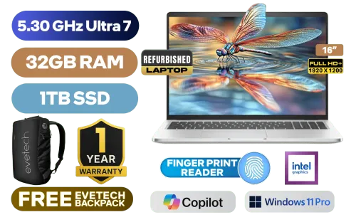 [OPEN BOX] Dell Pro 16 Plus Intel® Core™ Ultra 7-265U up to 5.3GHz, 12MB Cache, 12x Cores, 14x Threads Processor / 32GB DDR5 RAM / 1TB Ultra-Fast NVME SSD / 16" FHD+ (1920x1200) IPS-Level Display / Integrated Intel Graphics / <span style="color:blue; font-size: 17px;">Windows 11 Professional (64bit)</span> / Intel WiFi 6E AX211 Wireless LAN / Bluetooth 5.3 / 1080p FHD IR Camera / 2x USB Type-A / 2x USB Type-C (Supports Thunderbolt 4 / DisplayPort 2.1) / 1x HDMI / 1x SIM Card Slot / 1x Micro SD Card Reader / 1x RJ-45 / 1x Microphone and Headphone Combo Jack / White backlight Keyboard / 2x Stereo Speakers with Cirrus Logic Audio / Fingerprint Reader / 1 Year Warranty / Dell Pro 16 Plus Core Ultra 7 Laptop Deal[OPEN BOX] Dell Pro 16 Plus Intel® Core™ Ultra 7-265U up to 5.3GHz, 12MB Cache, 12x Cores, 14x Threads Processor / 32GB DDR5 RAM / 1TB Ultra-Fast NVME SSD / 16" FHD+ (1920x1200) IPS-Level Display / Integrated Intel Graphics / Windows 11 Professional (64bit) / Intel WiFi 6E AX211 Wireless LAN / Bluetooth 5.3 / 1080p FHD IR Camera / 2x USB Type-A / 2x USB Type-C (Supports Thunderbolt 4 / DisplayPort 2.1) / 1x HDMI / 1x SIM Card Slot / 1x Micro SD Card Reader / 1x RJ-45 / 1x Microphone and Headphone Combo Jack / White backlight Keyboard / 2x Stereo Speakers with Cirrus Logic Audio / Fingerprint Reader / 1 Year Warranty / Dell Pro 16 Plus Core Ultra 7 Laptop Deal [REFURB-BTO107_PB16250/32GB/1TB] / [+] GET FREE EVETECH NEO Premium Gaming Backpack+ FREE DELIVERY !