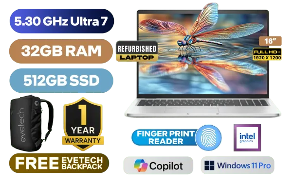 [OPEN BOX] Dell Pro 16 Plus Intel® Core™ Ultra 7-265U up to 5.3GHz, 12MB Cache, 12x Cores, 14x Threads Processor / 32GB DDR5 RAM / 512GB Ultra-Fast NVME SSD / 16" FHD+ (1920x1200) IPS-Level Display / Integrated Intel Graphics / <span style="color:blue; font-size: 17px;">Windows 11 Professional (64bit)</span> / Intel WiFi 6E AX211 Wireless LAN / Bluetooth 5.3 / 1080p FHD IR Camera / 2x USB Type-A / 2x USB Type-C (Supports Thunderbolt 4 / DisplayPort 2.1) / 1x HDMI / 1x SIM Card Slot / 1x Micro SD Card Reader / 1x RJ-45 / 1x Microphone and Headphone Combo Jack / White backlight Keyboard / 2x Stereo Speakers with Cirrus Logic Audio / Fingerprint Reader / 1 Year Warranty / Dell Pro 16 Plus Core Ultra 7 Laptop Deal[OPEN BOX] Dell Pro 16 Plus Intel® Core™ Ultra 7-265U up to 5.3GHz, 12MB Cache, 12x Cores, 14x Threads Processor / 32GB DDR5 RAM / 512GB Ultra-Fast NVME SSD / 16" FHD+ (1920x1200) IPS-Level Display / Integrated Intel Graphics / Windows 11 Professional (64bit) / Intel WiFi 6E AX211 Wireless LAN / Bluetooth 5.3 / 1080p FHD IR Camera / 2x USB Type-A / 2x USB Type-C (Supports Thunderbolt 4 / DisplayPort 2.1) / 1x HDMI / 1x SIM Card Slot / 1x Micro SD Card Reader / 1x RJ-45 / 1x Microphone and Headphone Combo Jack / White backlight Keyboard / 2x Stereo Speakers with Cirrus Logic Audio / Fingerprint Reader / 1 Year Warranty / Dell Pro 16 Plus Core Ultra 7 Laptop Deal [REFURB-BTO107_PB16250/32GB] / [+] GET FREE EVETECH NEO Premium Gaming Backpack+ FREE DELIVERY !