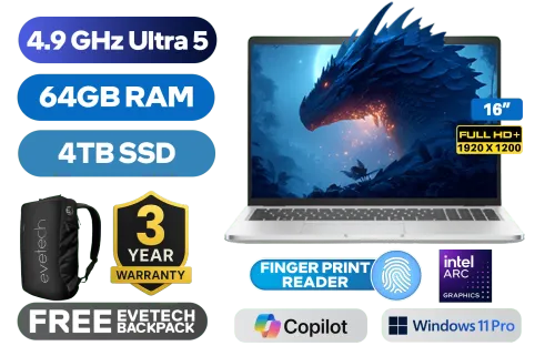 Dell Pro 16 Plus Intel® Core™ Ultra 5 235U up to 4.9GHz, 12MB Cache, 12x Cores, 14x Threads / 64GB DDR5 RAM / 4TB Ultra-Fast NVMe SSD / 16" FHD+ (1920 x 1200) Anti-Glare Display / Integrated Intel® Graphics / <span style="color:blue; font-size: 17px;">Windows 11 Pro</span> / Intel Wi-Fi 7 BE201 Wireless LAN / Bluetooth® 5.4 / 1080p FHD Camera / 2x USB Type-A / 2x USB Type-C (Supports Thunderbolt™ 4 / DisplayPort / Power Delivery) / 1x RJ-45 / 1x Microphone & Headset Combo Jack / 1x SIM Card Tray / 1x MicroSD Card Reader / Finger Print Reader / White Backlit Keyboard / 2x Stereo Speakers with Cirrus Logic Audio / Dell Pro 16 Plus Intel Core Ultra 5 Laptop DealDell Pro 16 Plus Intel® Core™ Ultra 5 235U up to 4.9GHz, 12MB Cache, 12x Cores, 14x Threads / 64GB DDR5 RAM / 4TB Ultra-Fast NVMe SSD / 16" FHD+ (1920 x 1200) Anti-Glare Display / Integrated Intel® Graphics / Windows 11 Pro / Intel Wi-Fi 7 BE201 Wireless LAN / Bluetooth® 5.4 / 1080p FHD Camera / 2x USB Type-A / 2x USB Type-C (Supports Thunderbolt™ 4 / DisplayPort / Power Delivery) / 1x RJ-45 / 1x Microphone & Headset Combo Jack / 1x SIM Card Tray / 1x MicroSD Card Reader / Finger Print Reader / White Backlit Keyboard / 2x Stereo Speakers with Cirrus Logic Audio / Dell Pro 16 Plus Intel Core Ultra 5 Laptop Deal [NBDEPB162505161EMEA/64GB/4TB] / 3 YEARS WARRANTY / [+] GET FREE EVETECH NEO Premium Gaming Backpack+ FREE DELIVERY !
