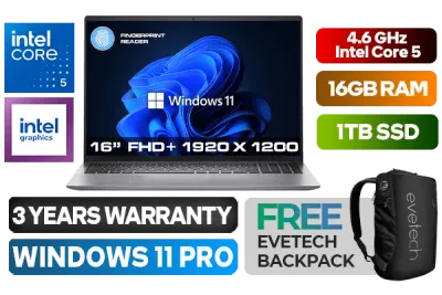 Dell Vostro 16 5640 Intel® Core™ 5-120U up to 5.00GHz Processor, 12MB Cache, 10x Cores, 12x Threads / 16GB DDR5 RAM / 1TB Ultra-Fast NVME SSD / 16" FHD+ 1920x1200 Anti-glare Wide-view LED Display / Integrated Intel Graphics / Windows 11 Professional (64bit) / Realtek RTL 8852BE Wi-Fi 6 Wireless LAN / Bluetooth 5.3 / 1080P Full HD 30FPS Webcam with Array Microphones / Finger Print Reader / 2x USB 3.2 Type-A / 1x USB 3.2 Type-C (With Displayport) / 1x HDMI 1.4 / 1x RJ45 Ethernet port / 1x Audio and Headphone Combo Jack / 1x SD Card Reader / Full Size White Backlit Keyboard / Dell Vostro 16 5640 Intel® Core™ 5 Laptop DealDell Vostro 16 5640 Intel® Core™ 5-120U up to 5.00GHz Processor, 12MB Cache, 10x Cores, 12x Threads / 16GB DDR5 RAM / 1TB Ultra-Fast NVME SSD / 16" FHD+ 1920x1200 Anti-glare Wide-view LED Display / Integrated Intel Graphics / Windows 11 Professional (64bit) / Realtek RTL 8852BE Wi-Fi 6 Wireless LAN / Bluetooth 5.3 / 1080P Full HD 30FPS Webcam with Array Microphones / Finger Print Reader / 2x USB 3.2 Type-A / 1x USB 3.2 Type-C (With Displayport) / 1x HDMI 1.4 / 1x RJ45 Ethernet port / 1x Audio and Headphone Combo Jack / 1x SD Card Reader / Full Size White Backlit Keyboard / Dell Vostro 16 5640 Intel® Core™ 5 Laptop Deal [N1002VNB5640EMEA01/1TB] / 3 YEARS WARRANTY / [+] GET FREE EVETECH NEO Premium Gaming Backpack+ FREE DELIVERY !