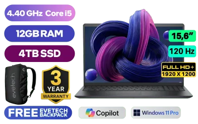 Dell Vostro 3520 12th Gen Intel Core i5-1235U up to 4.40GHz Processor, 12MB Cache, 10x Cores, 12x Threads / 12GB DDR4 RAM / 4TB Ultra-Fast NVME SSD / 15.6" FHD 1920x1080 Anti-glare 120Hz Wide-view Display / Integrated Intel UHD Graphics, DirectX 12 Support / Wireless-AC 9462 Wireless LAN / Bluetooth / HD Web Camera / <span style="font-size: 20px; color: #00BFFF; font-weight: bold;">Windows 11 Professional (64bit)</span> / SD Card Reader / 2x USB 3.2 Type-A / 1x USB 2.0 / 1x HDMI 1.4 / 1x RJ-45 / 1x Audio and Headphone Combo Jack / Standard Non-backlight Keyboard / Dell Vostro 3520 12th Gen Core i5 Laptop DealDell Vostro 3520 12th Gen Intel Core i5-1235U up to 4.40GHz Processor, 12MB Cache, 10x Cores, 12x Threads / 12GB DDR4 RAM / 4TB Ultra-Fast NVME SSD / 15.6" FHD 1920x1080 Anti-glare 120Hz Wide-view Display / Integrated Intel UHD Graphics, DirectX 12 Support / Wireless-AC 9462 Wireless LAN / Bluetooth / HD Web Camera / Windows 11 Professional (64bit) / SD Card Reader / 2x USB 3.2 Type-A / 1x USB 2.0 / 1x HDMI 1.4 / 1x RJ-45 / 1x Audio and Headphone Combo Jack / Standard Non-backlight Keyboard / Dell Vostro 3520 12th Gen Core i5 Laptop Deal [N1610PVNB3520EMEA01/12GB/4TB] / 3 YEARS WARRANTY / [+] GET FREE EVETECH NEO Premium Gaming Backpack+ FREE DELIVERY !