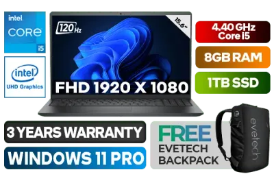 Dell Vostro 3520 12th Gen Intel Core i5-1235U up to 4.40GHz Processor, 12MB Cache, 10x Cores, 12x Threads / 8GB DDR4 RAM / 1TB Ultra-Fast NVME SSD / 15.6" FHD 1920x1080 Anti-glare 120Hz Wide-view Display / Integrated Intel UHD Graphics, DirectX 12 Support / No DVD Writer Included / RealTek 8821CE WiFi Wireless LAN / Bluetooth / HD Web Camera / <span style="font-size: 20px; color: #00BFFF; font-weight: bold;">Windows 11 Professional (64bit)</span> / SD Card Reader / 3x USB 3.2 Type-A / 1x USB 2.0 / 1x HDMI 1.4 / 1x RJ-45 / 1x Audio and Headphone Combo Jack / Standard Non-backlight Keyboard / Dell Vostro 3520 12th Gen Core i5 Laptop DealDell Vostro 3520 12th Gen Intel Core i5-1235U up to 4.40GHz Processor, 12MB Cache, 10x Cores, 12x Threads / 8GB DDR4 RAM / 1TB Ultra-Fast NVME SSD / 15.6" FHD 1920x1080 Anti-glare 120Hz Wide-view Display / Integrated Intel UHD Graphics, DirectX 12 Support / No DVD Writer Included / RealTek 8821CE WiFi Wireless LAN / Bluetooth / HD Web Camera / Windows 11 Professional (64bit) / SD Card Reader / 3x USB 3.2 Type-A / 1x USB 2.0 / 1x HDMI 1.4 / 1x RJ-45 / 1x Audio and Headphone Combo Jack / Standard Non-backlight Keyboard / Dell Vostro 3520 12th Gen Core i5 Laptop Deal [N3002PVNB3520EMEA01/1TB] / 3 YEARS WARRANTY / [+] GET FREE EVETECH NEO Premium Gaming Backpack+ FREE DELIVERY !