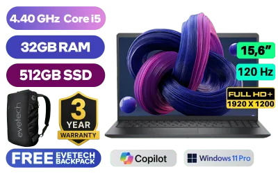 Dell Vostro 3520 12th Gen Intel Core i5-1235U up to 4.40GHz Processor, 12MB Cache, 10x Cores, 12x Threads / 32GB DDR4 RAM / 512GB Ultra-Fast NVME SSD / 15.6" FHD 1920x1080 Anti-glare 120Hz Wide-view Display / Integrated Intel UHD Graphics, DirectX 12 Support / Wireless-AC 9462 Wireless LAN / Bluetooth / HD Web Camera / <span style="font-size: 20px; color: #00BFFF; font-weight: bold;">Windows 11 Professional (64bit)</span> / SD Card Reader / 2x USB 3.2 Type-A / 1x USB 2.0 / 1x HDMI 1.4 / 1x RJ-45 / 1x Audio and Headphone Combo Jack / Standard Non-backlight Keyboard / Dell Vostro 3520 12th Gen Core i5 Laptop DealDell Vostro 3520 12th Gen Intel Core i5-1235U up to 4.40GHz Processor, 12MB Cache, 10x Cores, 12x Threads / 32GB DDR4 RAM / 512GB Ultra-Fast NVME SSD / 15.6" FHD 1920x1080 Anti-glare 120Hz Wide-view Display / Integrated Intel UHD Graphics, DirectX 12 Support / Wireless-AC 9462 Wireless LAN / Bluetooth / HD Web Camera / Windows 11 Professional (64bit) / SD Card Reader / 2x USB 3.2 Type-A / 1x USB 2.0 / 1x HDMI 1.4 / 1x RJ-45 / 1x Audio and Headphone Combo Jack / Standard Non-backlight Keyboard / Dell Vostro 3520 12th Gen Core i5 Laptop Deal [N1610PVNB3520EMEA01/32GB] / 3 YEARS WARRANTY / [+] GET FREE EVETECH NEO Premium Gaming Backpack+ FREE DELIVERY !