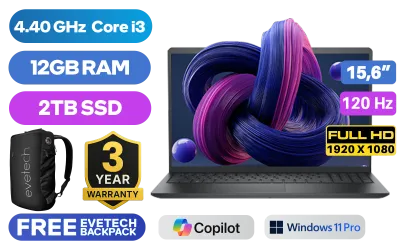 Dell Vostro 3520-2053 12th Gen Intel Core i3-1215U up to 4.40GHz Processor, 10MB Cache, 6x Cores, 8x Threads / 12GB DDR4 RAM / 2TB Ultra-Fast NVME SSD / 15.6" FHD 1920x1080 Anti-glare 120Hz IPS Display / Integrated Intel UHD Graphics, DirectX 12 Support / No DVD Writer Included / <span style="font-size: 20px; color: #00BFFF; font-weight: bold;">Windows 11 Professional (64bit)</span> / Wireless-AC 9462 Wireless LAN / Bluetooth / HD Web Camera / SD Card Reader / 2x USB 3.2 Type-A / 1x USB 2.0 / 1x HDMI 1.4 / 1x RJ-45 / 1x Audio and Headphone Combo Jack / Standard Non-backlight Keyboard / Dell Vostro 3520 12th Gen Core i3 Laptop DealDell Vostro 3520-2053 12th Gen Intel Core i3-1215U up to 4.40GHz Processor, 10MB Cache, 6x Cores, 8x Threads / 12GB DDR4 RAM / 2TB Ultra-Fast NVME SSD / 15.6" FHD 1920x1080 Anti-glare 120Hz IPS Display / Integrated Intel UHD Graphics, DirectX 12 Support / No DVD Writer Included / Windows 11 Professional (64bit) / Wireless-AC 9462 Wireless LAN / Bluetooth / HD Web Camera / SD Card Reader / 2x USB 3.2 Type-A / 1x USB 2.0 / 1x HDMI 1.4 / 1x RJ-45 / 1x Audio and Headphone Combo Jack / Standard Non-backlight Keyboard / Dell Vostro 3520 12th Gen Core i3 Laptop Deal [N5390PVNB3520EMEA01/12GB/2TB] / 3 YEARS WARRANTY / [+] GET FREE EVETECH NEO Premium Gaming Backpack+ FREE DELIVERY !