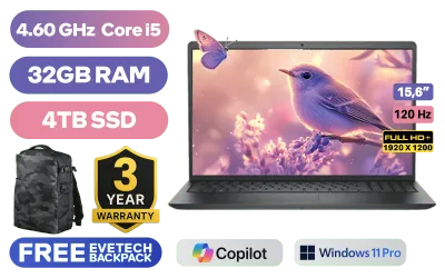 Dell Vostro 3530-6555 Intel 13th Gen i5-1334U up to 4.60GHz, 12MB Cache Processor, 10x Cores, 12x Threads / 32GB DDR4 RAM / 4TB Ultra-Fast NVME SSD / 15.6" FHD (1920x1080) Anti-glare 120Hz Display / Integrated Intel UHD Graphics / <span style="color:blue; font-size: 17px;">Windows 11 Professional (64bit)</span> / Realtek 8821CE Wireless LAN / Bluetooth / HD 720p Web Camera / 2x USB Type-A / 1x USB Type-C / 1x HDMI / 1x RJ45 / 1x Audio and Headphone Combo Jack / SD Card Reader / Standard Non-backlight Keyboard / Dell Vostro 3530 13th Gen Core i5 Laptop DealDell Vostro 3530-6555 Intel 13th Gen i5-1334U up to 4.60GHz, 12MB Cache Processor, 10x Cores, 12x Threads / 32GB DDR4 RAM / 4TB Ultra-Fast NVME SSD / 15.6" FHD (1920x1080) Anti-glare 120Hz Display / Integrated Intel UHD Graphics / Windows 11 Professional (64bit) / Realtek 8821CE Wireless LAN / Bluetooth / HD 720p Web Camera / 2x USB Type-A / 1x USB Type-C / 1x HDMI / 1x RJ45 / 1x Audio and Headphone Combo Jack / SD Card Reader / Standard Non-backlight Keyboard / Dell Vostro 3530 13th Gen Core i5 Laptop Deal [N3409PVNB3530EMEA01/32GB/4TB] / [+] GET FREE EVETECH NEO Premium Gaming Backpack / 3 YEARS WARRANTY + FREE DELIVERY !