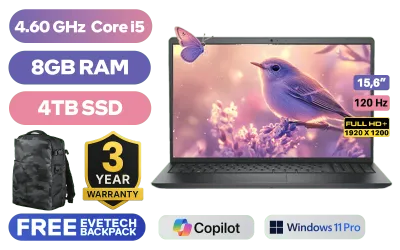 Dell Vostro 3530-6555 Intel 13th Gen i5-1334U up to 4.60GHz, 12MB Cache Processor, 10x Cores, 12x Threads / 8GB DDR4 RAM / 4TB Ultra-Fast NVME SSD / 15.6" FHD (1920x1080) Anti-glare 120Hz Display / Integrated Intel UHD Graphics / <span style="color:blue; font-size: 17px;">Windows 11 Professional (64bit)</span> / Realtek 8821CE Wireless LAN / Bluetooth / HD 720p Web Camera / 2x USB Type-A / 1x USB Type-C / 1x HDMI / 1x RJ45 / 1x Audio and Headphone Combo Jack / SD Card Reader / Standard Non-backlight Keyboard / Dell Vostro 3530 13th Gen Core i5 Laptop DealDell Vostro 3530-6555 Intel 13th Gen i5-1334U up to 4.60GHz, 12MB Cache Processor, 10x Cores, 12x Threads / 8GB DDR4 RAM / 4TB Ultra-Fast NVME SSD / 15.6" FHD (1920x1080) Anti-glare 120Hz Display / Integrated Intel UHD Graphics / Windows 11 Professional (64bit) / Realtek 8821CE Wireless LAN / Bluetooth / HD 720p Web Camera / 2x USB Type-A / 1x USB Type-C / 1x HDMI / 1x RJ45 / 1x Audio and Headphone Combo Jack / SD Card Reader / Standard Non-backlight Keyboard / Dell Vostro 3530 13th Gen Core i5 Laptop Deal [N3409PVNB3530EMEA01/4TB] / [+] GET FREE EVETECH NEO Premium Gaming Backpack / 3 YEARS WARRANTY + FREE DELIVERY !