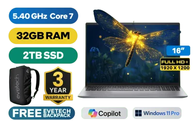 DELL Vostro 16 5640 Intel Core 7-150U up to 5.40GHz CPU, 12MB Smart Cache, 10x Core, 12x Threads / 32GB DDR5 RAM / 2TB Ultra-Fast NVMe SSD / 16" FHD+ 1920x1200 Anti-Glare IPS-Level Display / Intel Integrated Graphics / <span style="font-size: 20px; color: #00BFFF; font-weight: bold;">Windows 11 Professional (64bit)</span> / Realtek RTL8852BE Wi-Fi 6 Wireless LAN / Bluetooth 5.2 / 2 x USB Type-A / 1 x USB Type-C /1 x HDMI / 1x RJ45 Ethernet LAN / 1x SD Card Reader / Integrated Web Camera / White Backlit Keyboard / DELL Vostro 16 5640 Intel Core 7-150U Laptop DealDELL Vostro 16 5640 Intel Core 7-150U up to 5.40GHz CPU, 12MB Smart Cache, 10x Core, 12x Threads / 32GB DDR5 RAM / 2TB Ultra-Fast NVMe SSD / 16" FHD+ 1920x1200 Anti-Glare IPS-Level Display / Intel Integrated Graphics / Windows 11 Professional (64bit) / Realtek RTL8852BE Wi-Fi 6 Wireless LAN / Bluetooth 5.2 / 2 x USB Type-A / 1 x USB Type-C /1 x HDMI / 1x RJ45 Ethernet LAN / 1x SD Card Reader / Integrated Web Camera / White Backlit Keyboard / DELL Vostro 16 5640 Intel Core 7-150U Laptop Deal [N1001VNB5640EMEA01/32GB/2TB] / 3 YEARS WARRANTY / [+] GET FREE EVETECH NEO Premium Gaming Backpack+ FREE DELIVERY !