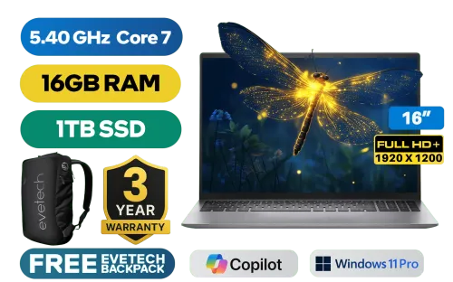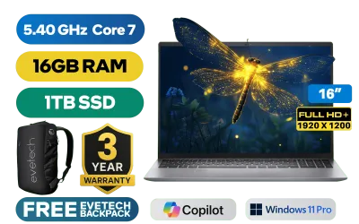 DELL Vostro 16 5640 Intel® Core™ 7-150U up to 5.40GHz Processor, 12MB Smart Cache, 10x Core, 12x Threads / 16GB DDR5 RAM / 1TB Ultra-Fast NVMe SSD / 16" FHD+ 1920x1200 Anti-Glare IPS-Level Display / Intel Integrated Graphics / <span style="font-size: 20px; color: #00BFFF; font-weight: bold;">Windows 11 Professional (64bit)</span> / Realtek RTL8852BE Wi-Fi 6 Wireless LAN / Bluetooth 5.2 / 2 x USB Type-A / 1 x USB Type-C /1 x HDMI 1.4b / 1x RJ45 Ethernet LAN / 1x SD Card Reader / Integrated Web Camera / 1x Audio and Microphone Combo Jack / White Backlit Keyboard / DELL Vostro 16 5640 Intel® Core™ 7-150U Laptop DealDELL Vostro 16 5640 Intel® Core™ 7-150U up to 5.40GHz Processor, 12MB Smart Cache, 10x Core, 12x Threads / 16GB DDR5 RAM / 1TB Ultra-Fast NVMe SSD / 16" FHD+ 1920x1200 Anti-Glare IPS-Level Display / Intel Integrated Graphics / Windows 11 Professional (64bit) / Realtek RTL8852BE Wi-Fi 6 Wireless LAN / Bluetooth 5.2 / 2 x USB Type-A / 1 x USB Type-C /1 x HDMI 1.4b / 1x RJ45 Ethernet LAN / 1x SD Card Reader / Integrated Web Camera / 1x Audio and Microphone Combo Jack / White Backlit Keyboard / DELL Vostro 16 5640 Intel® Core™ 7-150U Laptop Deal [N1001VNB5640EMEA01/1TB] / 3 YEARS WARRANTY / [+] GET FREE EVETECH NEO Premium Gaming Backpack+ FREE DELIVERY !