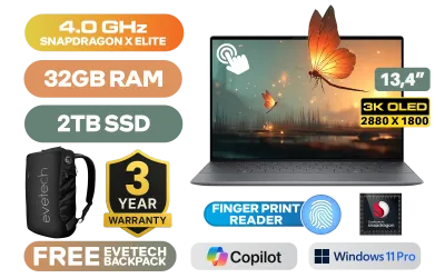 [TOUCHSCREEN] Dell XPS 13 9345-1136 Snapdragon X Elite X1E-80-100 up to 4.0GHz Processor, 42MB Cache, 12x Cores / 32GB LPDDR5X RAM / 2TB Ultra-Fast NVMe SSD / 13.4" 3K (2880x1800) OLED Touchscreen Display / Qualcomm Adreno Graphics / <span style="font-size: 20px; color: #00BFFF; font-weight: bold;">Windows 11 Professional (64bit)</span> / FHD 1080p Web Camera with Dual Array Microphone / Qualcomm FastConnect 7800 Wi-Fi 7 Wireless LAN / Bluetooth 5.4 / Graphite White Backlit Keyboard / Fingerprint Reader / 2 x USB Type-C USB4 (Power Delivery/DisplayPort) / 2W x 4 Dual Qualcomm speakers / Dell XPS 13 9345 Snapdragon X Elite Laptop Deal[TOUCHSCREEN] Dell XPS 13 9345-1136 Snapdragon X Elite X1E-80-100 up to 4.0GHz Processor, 42MB Cache, 12x Cores / 32GB LPDDR5X RAM / 2TB Ultra-Fast NVMe SSD / 13.4" 3K (2880x1800) OLED Touchscreen Display / Qualcomm Adreno Graphics / Windows 11 Professional (64bit) / FHD 1080p Web Camera with Dual Array Microphone / Qualcomm FastConnect 7800 Wi-Fi 7 Wireless LAN / Bluetooth 5.4 / Graphite White Backlit Keyboard / Fingerprint Reader / 2 x USB Type-C USB4 (Power Delivery/DisplayPort) / 2W x 4 Dual Qualcomm speakers / Dell XPS 13 9345 Snapdragon X Elite Laptop Deal [NBDEX9345XE321W11PE/2TB] / 3 YEARS WARRANTY / [+] GET FREE EVETECH NEO Premium Gaming Backpack+ FREE DELIVERY !