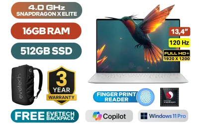 Dell XPS 13 9345 Snapdragon X Elite X1E-80-100 up to 4.0GHz Processor, 42MB Cache, 12x Cores / 16GB LPDDR5X RAM / 512GB Ultra-Fast NVMe SSD / 13.4" FHD+ (1920x1200) 120Hz Anti-Glare Display/ Qualcomm Adreno Graphics / <span style="font-size: 20px; color: #00BFFF; font-weight: bold;">Windows 11 Professional (64bit)</span> / FHD 1080p Web Camera with Dual Array Microphone / Qualcomm FastConnect 7800 Wi-Fi 7 Wireless LAN / Bluetooth 5.4 / Platinum Backlit Keyboard / Fingerprint Reader / 2 x USB Type-C USB4 (Power Delivery/DisplayPort) / 2W x 4 Dual Qualcomm speakers / 3 Years Warranty / Dell XPS 13 9345 X Elite Laptop DealDell XPS 13 9345 Snapdragon X Elite X1E-80-100 up to 4.0GHz Processor, 42MB Cache, 12x Cores / 16GB LPDDR5X RAM / 512GB Ultra-Fast NVMe SSD / 13.4" FHD+ (1920x1200) 120Hz Anti-Glare Display/ Qualcomm Adreno Graphics / Windows 11 Professional (64bit) / FHD 1080p Web Camera with Dual Array Microphone / Qualcomm FastConnect 7800 Wi-Fi 7 Wireless LAN / Bluetooth 5.4 / Platinum Backlit Keyboard / Fingerprint Reader / 2 x USB Type-C USB4 (Power Delivery/DisplayPort) / 2W x 4 Dual Qualcomm speakers / 3 Years Warranty / Dell XPS 13 9345 X Elite Laptop Deal [NBDEX9345XE1651211PE] / 3 YEARS WARRANTY / [+] GET FREE EVETECH NEO Premium Gaming Backpack+ FREE DELIVERY !