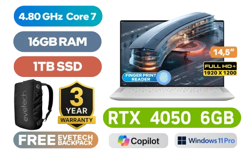 Dell XPS 14 9440 Intel® Core™ 7-155H up to 4.80GHz Processor, 24MB Cache, 16x Cores, 22x Threads / 16GB LPDDR5X RAM / 1TB Ultra-Fast NVMe SSD / 14.5" FHD+ (1920 x 1200) 120Hz, InfinityEdge Display / NVIDIA GeForce RTX 4050 6GB GDDR6 Dedicated Graphics / FHD 1080p Camera with Dual Array Microphone / <span style="font-size: 20px; color: #00BFFF; font-weight: bold;">Windows 11 Professional (64bit)</span> / Platinum Backlit Keyboard / Intel Wi-Fi 6E AX211 Wireless LAN / Bluetooth 5.2 / Fingerprint Reader / 3 x USB Type-C (Thunderbolt 4, Power Delivery, DisplayPort) / 1x Headaphone & Microphone Audio Combo Jack / 1 x MicroSD Card Reader / 2 x 2W Dual Stereo speakers / FREE Type-C to HDMI and USB Type-A Adapter / Dell XPS 14 9440 Intel® Core™ Ultra 7 RTX 4050 Laptop DealDell XPS 14 9440 Intel® Core™ 7-155H up to 4.80GHz Processor, 24MB Cache, 16x Cores, 22x Threads / 16GB LPDDR5X RAM / 1TB Ultra-Fast NVMe SSD / 14.5" FHD+ (1920 x 1200) 120Hz, InfinityEdge Display / NVIDIA GeForce RTX 4050 6GB GDDR6 Dedicated Graphics / FHD 1080p Camera with Dual Array Microphone / Windows 11 Professional (64bit) / Platinum Backlit Keyboard / Intel Wi-Fi 6E AX211 Wireless LAN / Bluetooth 5.2 / Fingerprint Reader / 3 x USB Type-C (Thunderbolt 4, Power Delivery, DisplayPort) / 1x Headaphone & Microphone Audio Combo Jack / 1 x MicroSD Card Reader / 2 x 2W Dual Stereo speakers / FREE Type-C to HDMI and USB Type-A Adapter / Dell XPS 14 9440 Intel® Core™ Ultra 7 RTX 4050 Laptop Deal [NBDEX9440U7161R11PE] / 3 YEARS WARRANTY / [+] GET FREE EVETECH NEO Premium Gaming Backpack+ FREE DELIVERY !