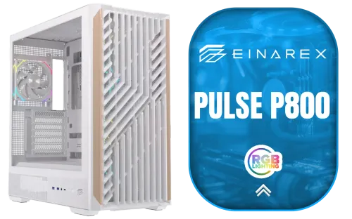 EINAREX Pulse P800 ATX Mid-Tower Gaming Case - White / Tempered Glass Side Panel / Wooden Front with Geometric Design / Supports Up to 13×120mm Fans / Spacious Interior with Cable Management / Supports Up to ATX Motherboards / EXCS-PL-800R-W / EXCS-PL-800R-W + FREE DELIVERY !