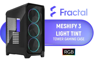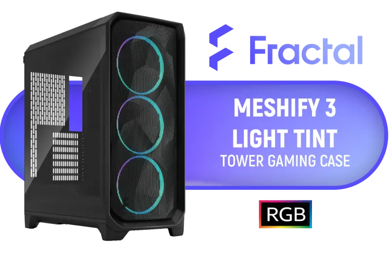 Fractal Design Meshify 3 RGB Black Tempered Glass Light Tint - High Airflow PC Gaming Case - Mesh Front Panel - Three ARGB Momentum 14 Gen 2 Fans Included - E-ATX/ATX/mATX Support / FD-C-MES3A-06