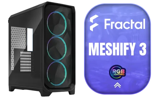 Fractal Design Meshify 3 RGB Black Tempered Glass Light Tint - High Airflow PC Gaming Case - Mesh Front Panel - Three ARGB Momentum 14 Gen 2 Fans Included - E-ATX/ATX/mATX Support / FD-C-MES3A-06 / FD-C-MES3A-06 + FREE DELIVERY !