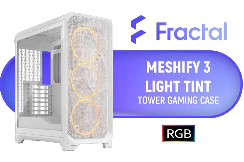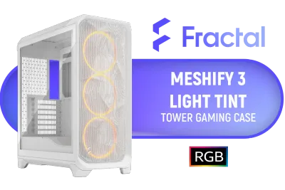 Fractal Design Meshify 3 RGB White Tempered Glass Clear Tint - High Airflow PC Gaming Case - Mesh Front Panel - Three ARGB Momentum 14 Gen 2 Fans Included - E-ATX/ATX/mATX Support / FD-C-MES3A-07