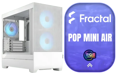 Fractal Design Pop Mini Air RGB White Core Tempered Glass Clear Tint - Up to 240mm front, top Radiator Support - Two HDDs, six SSDs Storage Compartments - Supports mATX, Mini ITX / 3 x Pre-Installed RGB Fans Included / FD-C-POR1M-01 / FD-C-POR1M-01
