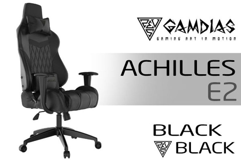 Gamdias Achilles E2 Gaming Chair - Black / Leather Style Vinyl Material / Head And Lumber Support Cushions / Class 4 Gas Lift / Max Load up to 150kg / ACHILLES E2 Black
