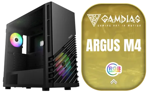 Gamdias Argus M4 Tempered Glass ATX Gaming Case - Black / Supports Motherboards up to ATX / Compatible with Dual 360mm Radiator (Top & Front) / RGB Streaming Lighting / 1 Built-in 140mm Front Fan and 120mm Rear Fan / Magnetic Dust Filter / ARGUS-M4 + FREE DELIVERY !
