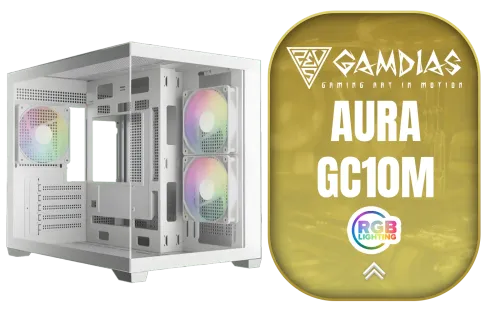 GAMDIAS AURA GC10M Micro-ATX & MIni-ITX Mid Tower Gaming Computer PC Case with Side Tempered Glass, 3x 120mm ARGB Case Fans White / AURA-GC10M-ARGB-WH + FREE DELIVERY !