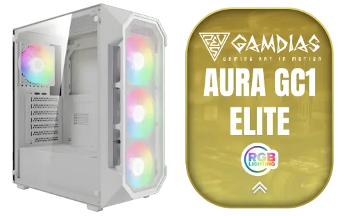 GAMDIAS Gamdias AURA GC1 Elite White ATX Mid Tower PC Gaming Case with Side Tempered Glass / Supports Motherboards up to ATX / 4x 120mm ARGB Case Fans and Sync with 5V RGB Motherboard / AURA-GC1-ELITE-WHITE + FREE DELIVERY !