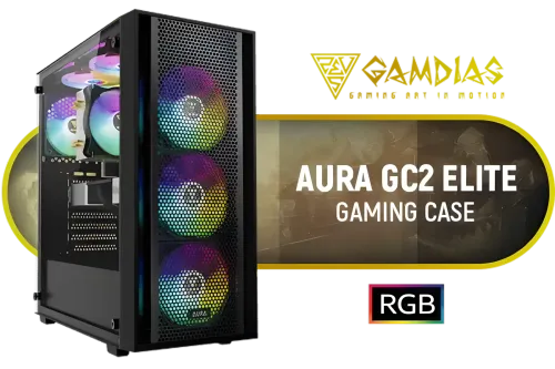 Gamdias Aura GC2 Elite Tempered Glass ATX Gaming Case - Black / Supports Motherboards up to ATX / Mesh Front Panel / Magnetic Dust Filter / 4 Built-in 120mm RGB Fan / Mid-tower Case - AURA-GC2-ELITE / AURA-GC2-ELITE
