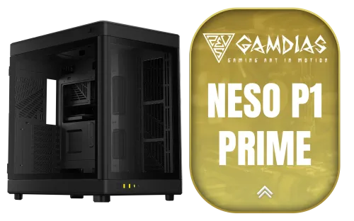 Gamdias Neso P1 Prime Lifestyle E-ATX Gaming Case - Black / Modular Orientation / Full Panoramic Display / Supports Motherboards up to E-ATX / Trapezoid Shaped for Horizontal Desktop and Vertical Tower Setup / No Fans Included / NESO-P1-B + FREE DELIVERY !
