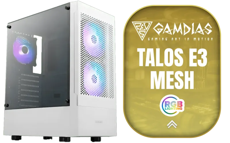 Gamdias TALOS E3 Mesh White ATX Gaming Case - ARGB