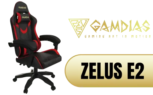 Gamdias Zelus E2 Gaming Chair - Black-Red / Premium PU Leather / Adjustable Back to 126 Degree / Adjustable Backrest / Gas Lift Base / Max Load up to 130kg / ZELUS E2 L BR / ZELUS E2 L BR