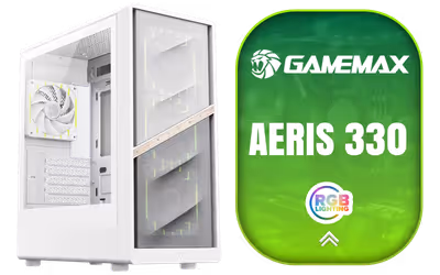 Gamemax AERIS 330 Micro-ATX Case — White, ARGB Fans | Evetech