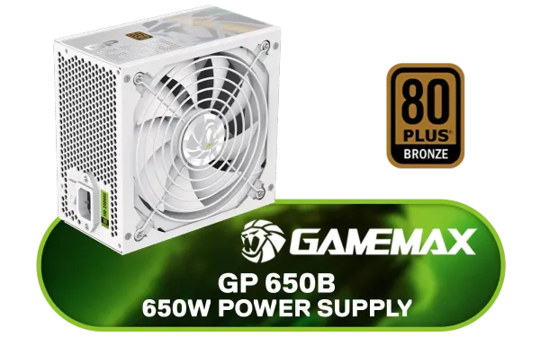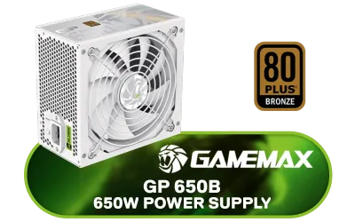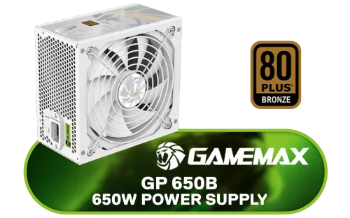 Gamemax GP 650B 650W Power Supply - White / 650W 80 Plus Bronze / Ultra-Stable Dual DC-DC Design With ±2% Voltage Accuracy / Premium Japanese Capacitors For Long-Term Reliability / 140mm Smart Temperature-Control Fan / Double-Sided PCB With Top-Side SMD Layout / GP 650B WH