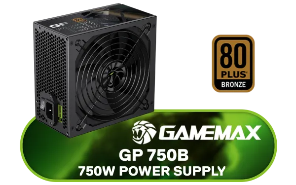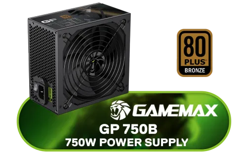 Gamemax GP 750B 750W Power Supply - Black / 750W 80 Plus Bronze ATX 3.1 PCIe 5.1 / Ultra-Stable Dual DC-DC / Premium Japanese Capacitors For Long-Term Reliability / 140mm Smart Temperature-Control Fan / Double-Sided PCB With Top-Side SMD Layout / GP 750B