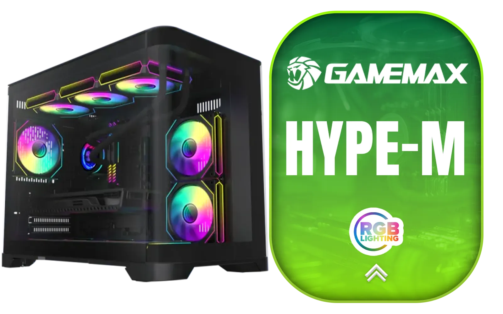 Gamemax HYPE-M Black Gaming Case — M-ATX/ITX, 8 RGB Fans