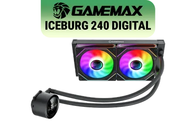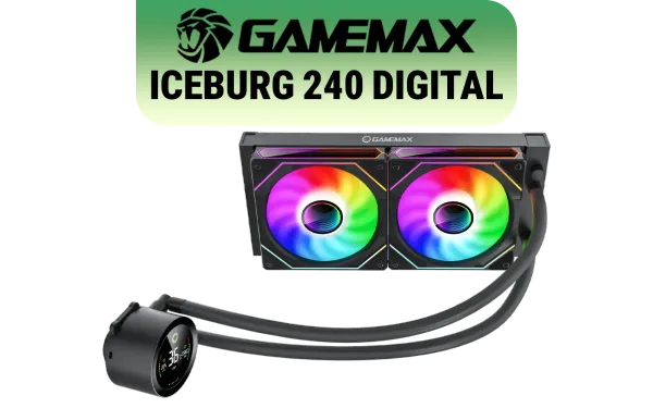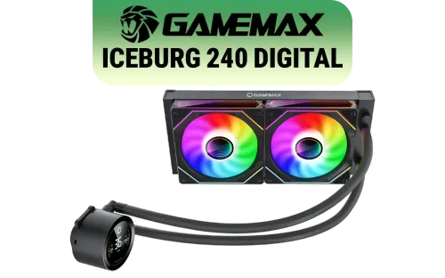 GAMEMAX ICEBURG 240 Digital Liquid Cooler - Black / Digital Display / Low Noise Pump / 240mm Radiator / Large Copper Base / Compatible with Intel & AMD / ICEBURG 240 DIGITAL BK