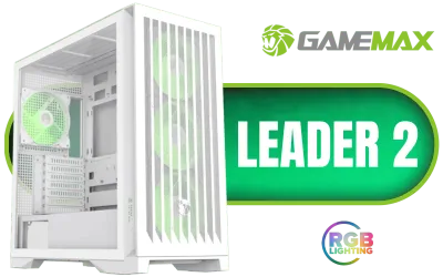 Gamemax Leader 2 E-ATX Mid-Tower Gaming Case - White / Tempered Glass Side Panel / Support 9×120mm or 8×140mm Fan Mounts / 4 Pre-installed 140mm ARGB Fans + Dedicated Controller / E-ATX, ATX(+ BTF), M-ATX(+ BTF), ITX Motherboard Support / ATX PSU Support / LEADER-2-WH