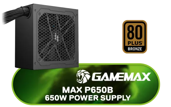 Gamemax MAX P650B 650W Power Supply / 650W 80 Plus Bronze ATX 3.1 / Full Intel ATX 3.1 Support for 200% System & 300% GPU Power Excursions / 100% All-Japanese Capacitors (Rubycon, NCC, Nichicon) / 100% Pure Copper Output Cables / IEC 62368-1:2018 TÜV SÜD Certified / MAX P650B